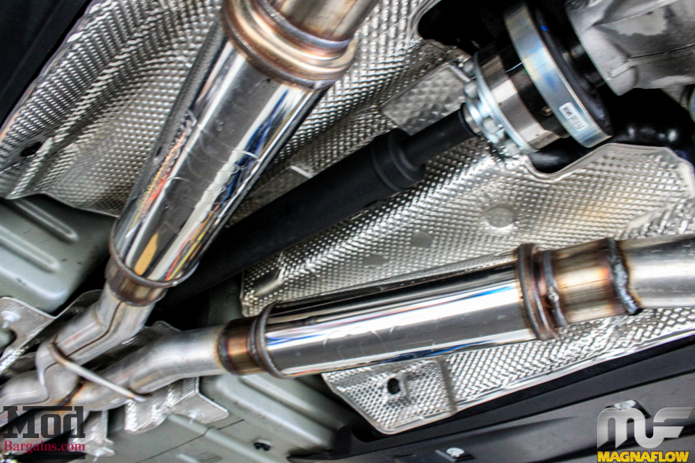 Here’s how the custom Magnaflow Exhaust looks underneath the Challenger – from this angle we can also see the BC Coilovers.