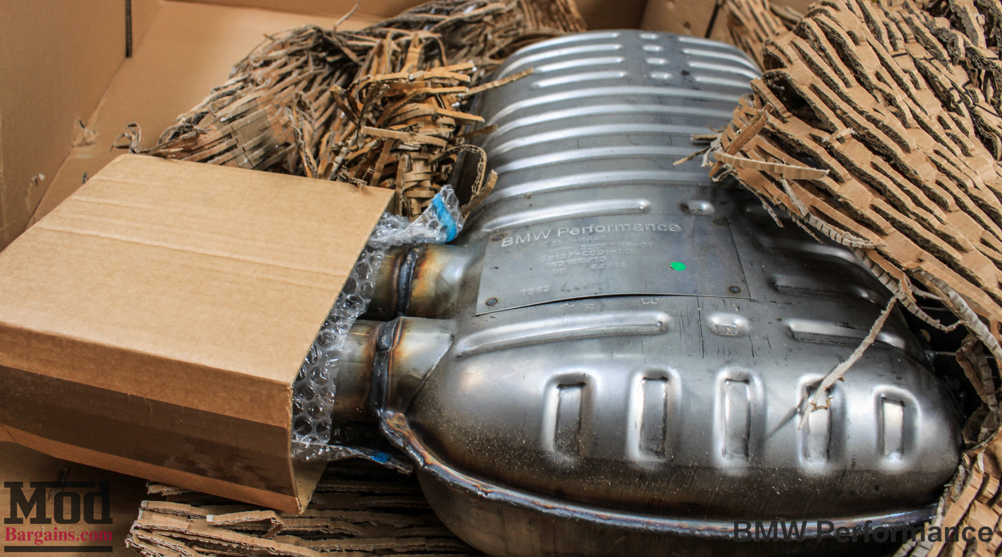 BMW_E90_328i_White_BMW_Performance_Exhaust_Only-4As we said in our Best Mods for BMW E90 writeup, the exhaust system defines the look of the rear end of your car, and a stock exhaust often seems weird on a modded car. On this mostly-stock LCI BMW 328i, the OEM Exhaust was really showing its age, the factory tips long since stained with all kinds of waterspots and soot, meaning that just replacing these would be a huge aesthetic improvement.BMW_E90_328i_White_BMW_Performance_Exhaust_Only-1 Here’s the BMW Performance muffler element still in the box.BMW_E90_328i_White_BMW_Performance_Exhaust_Only-5 And here’s how the BMW Performance Cat-Back Exhaust for E90 BMW 328i looks, before installing it.BMW_E90_328i_White_BMW_Performance_Exhaust_Only-6 The Cat-Back system includes the connecting pipe you need as well, offering both a better sound and more power than you’d get out of the car with an axle-back setup.BMW_E90_328i_White_BMW_Performance_Exhaust_Only-7Installation is slip-on fit, making these BMW Performance exhausts easy and painless to install.