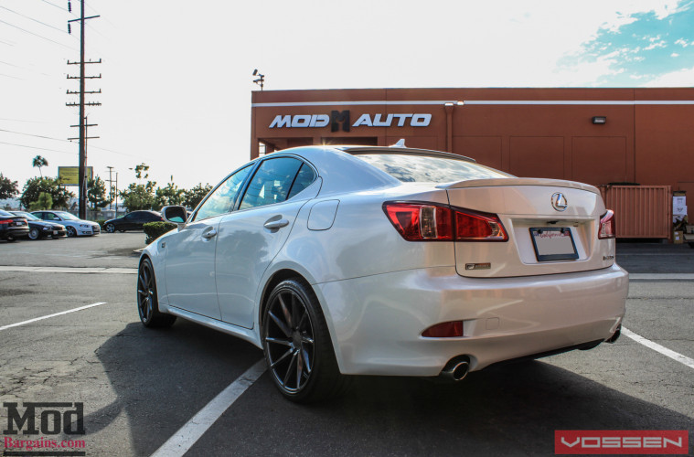 Eric went with a set of VOSSEN Wheels, the new Vossen CVT Wheels for Lexus, featuring a twisted, straight spoke design with a bit of concavity. After mounting them up to do one final check for clearance, we took the IS350 F-Sport outside to admire the difference.