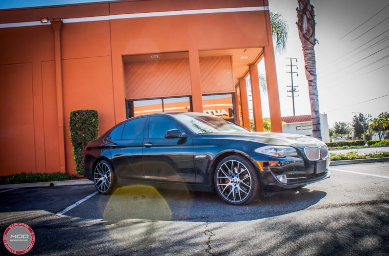 When a set of older aftermarket wheels gets old and starts to crack after years of use on the extremely harsh roads of LA, it’s often easier to just get a new set of wheels than hassle with trying to get an individual replacement wheel – there’s enough variance in powdercoats that a gunmetal wheel from two years ago won’t be a color match for a gunmetal wheel made last week – if you can even find a new one. That’s why when one of Chris E’s wheels went bad, he rang up Mod Expert Sean about a set of new wheels for BMW F10 5-series and booked the next available appointment.