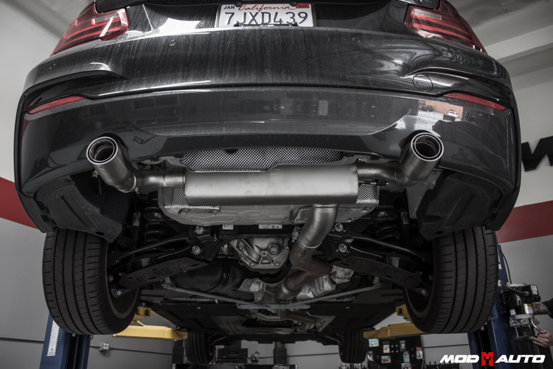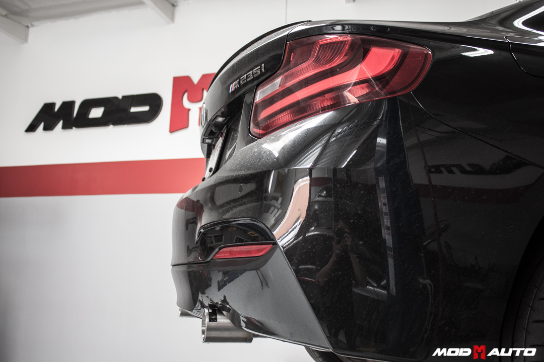 One of the few flaws of the F22 BMW M235i is its overly quiet exhaust, as we mentioned in our Best Mods for BMW M235i / F22 2-Series guide. An exhaust gives your car character and really makes a difference you’ll notice every single time you drive the car, which is exactly why this F22 came in for a visit with Sr Mod Expert Alan Wei to install an Exhaust for F22 M235i.