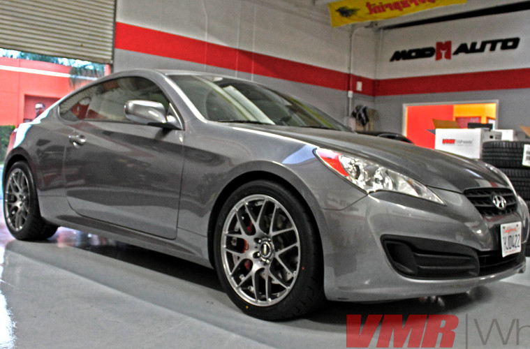 Elliott recommended a set of VMR Wheels V710 for Genesis Coupe in a 19×8.5 / 19×9.5 staggered fitment, in Hyper Silver Finish.