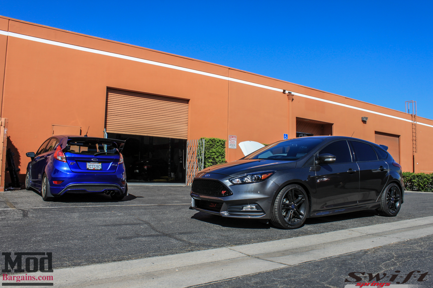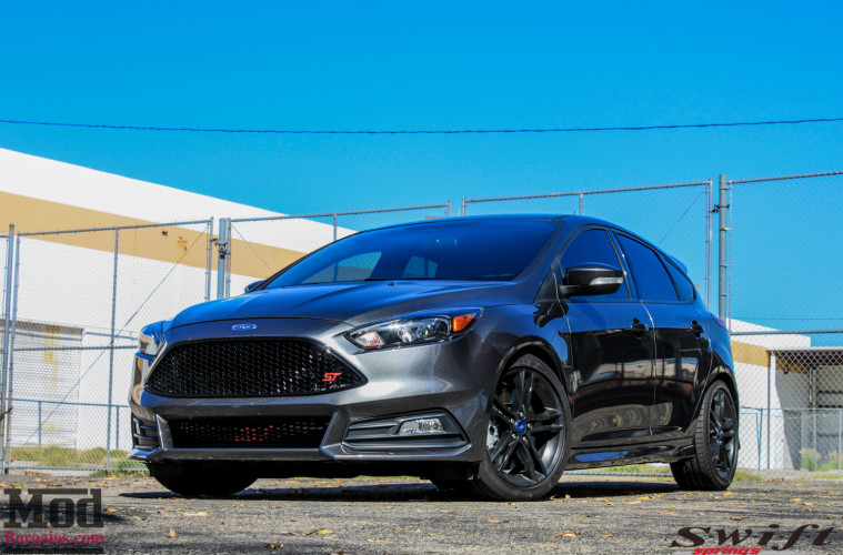 This past saturday, California ST club member John K brought his 2015 Ford Focus ST [ST3] into the shop @ ModAuto to give his Focus ST suspension a healthy drop and better handling behaviors. We’ve shown you several Focus STs on Swift Springs, and John K’s ST is in for a set of Swift Springs for Focus ST as well – it’s safe to say that these are an extremely popular option, and noone has had anything negative to say about them. ModAuto CEO/Co-Founder Mike Brown helped facilitate the install.