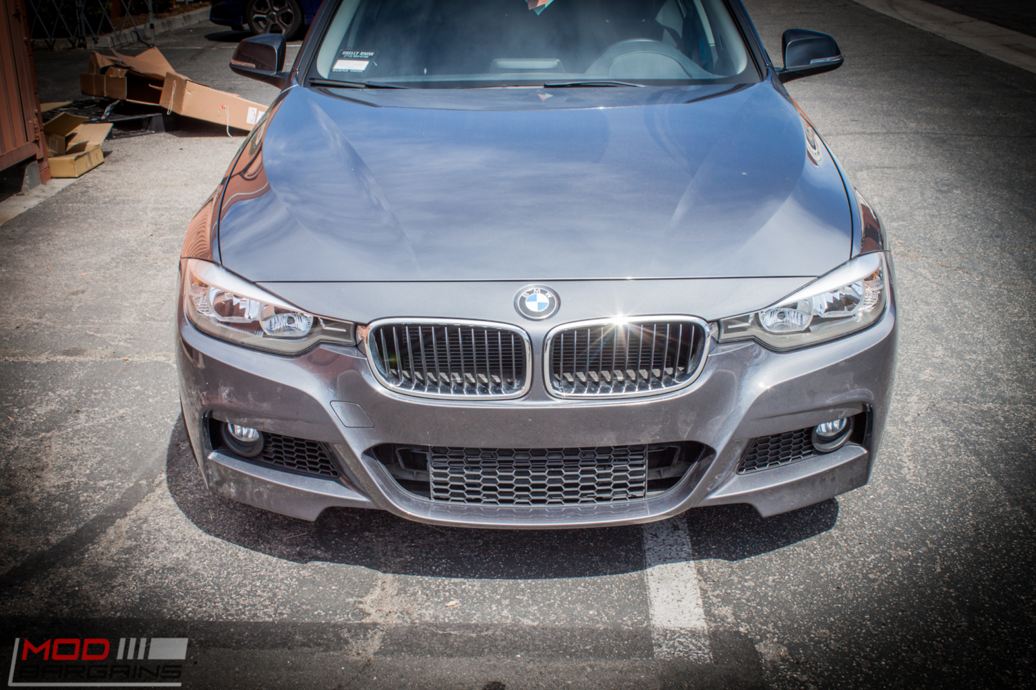 From this angle you can see the seam where the painted reflectors are – they’re an easy upgrade that really cleans up the front end. Speaking of the front end – the M-Sport Style front Bumper for BMW F30 is a handsome addition that makes the car look much better than it does with the base model bumper.