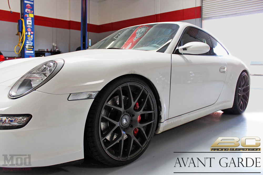 Avant Garde wheels offers a Porsche specific line, their Ruger collection – and the Mod Experts suggested a set of Avant Garde Ruger Mesh wheels for Porsche 997, spec’d out at 19×8.5 up front and 19×11 out back.