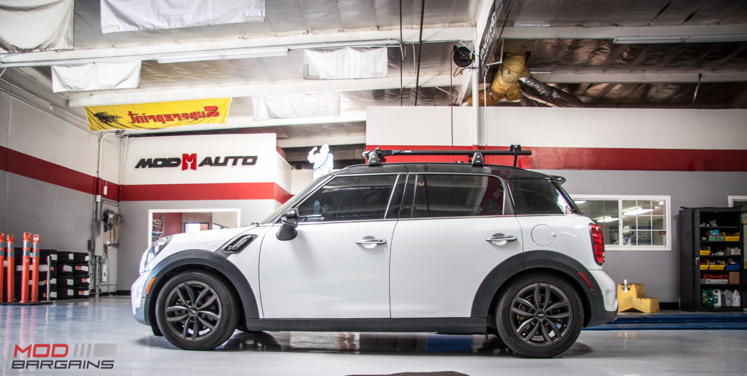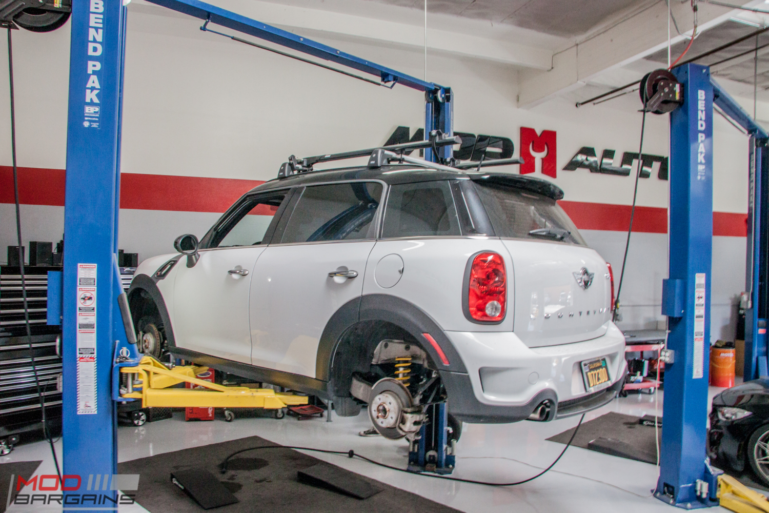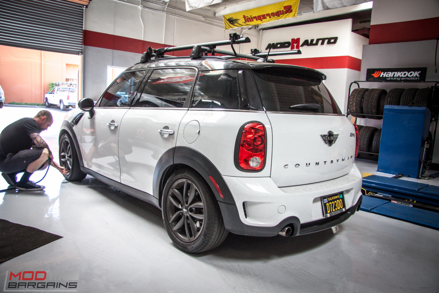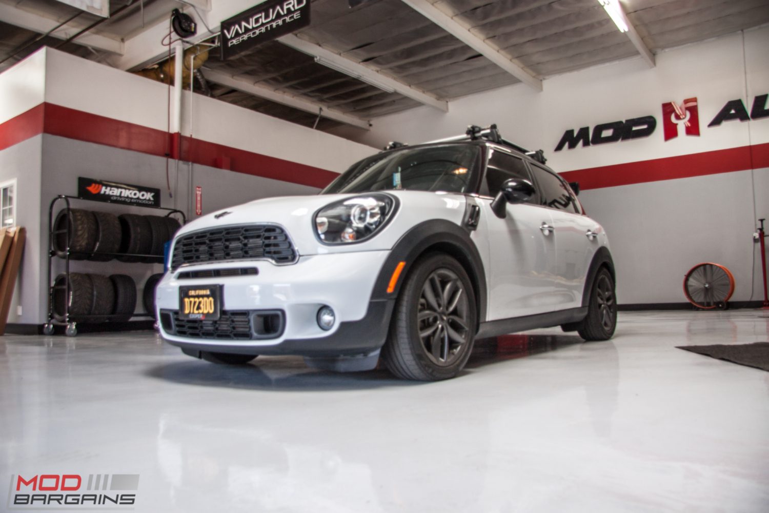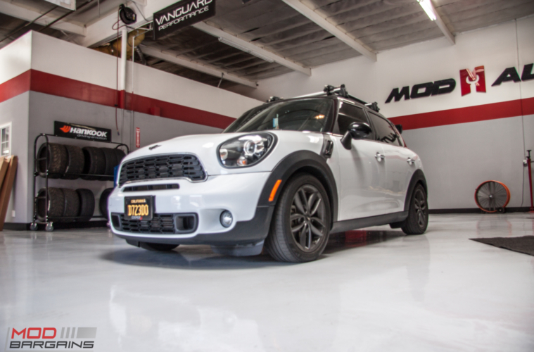 The Mini Countryman is a cool little CUV, and being a Mini, it’s inherently fun. However the stock ride height is more appropriate for offroading and leaves the car looking far from its best. That’s why this Mini came in to see Mod Expert Tim to lower the suspension – and a set of custom Forgestar wheels is on order too, but we still have a few weeks left to wait on those.