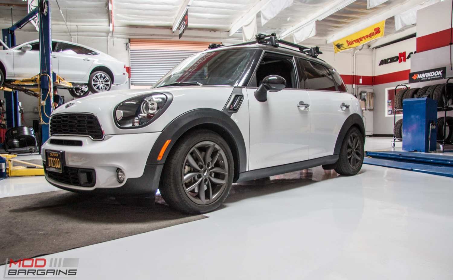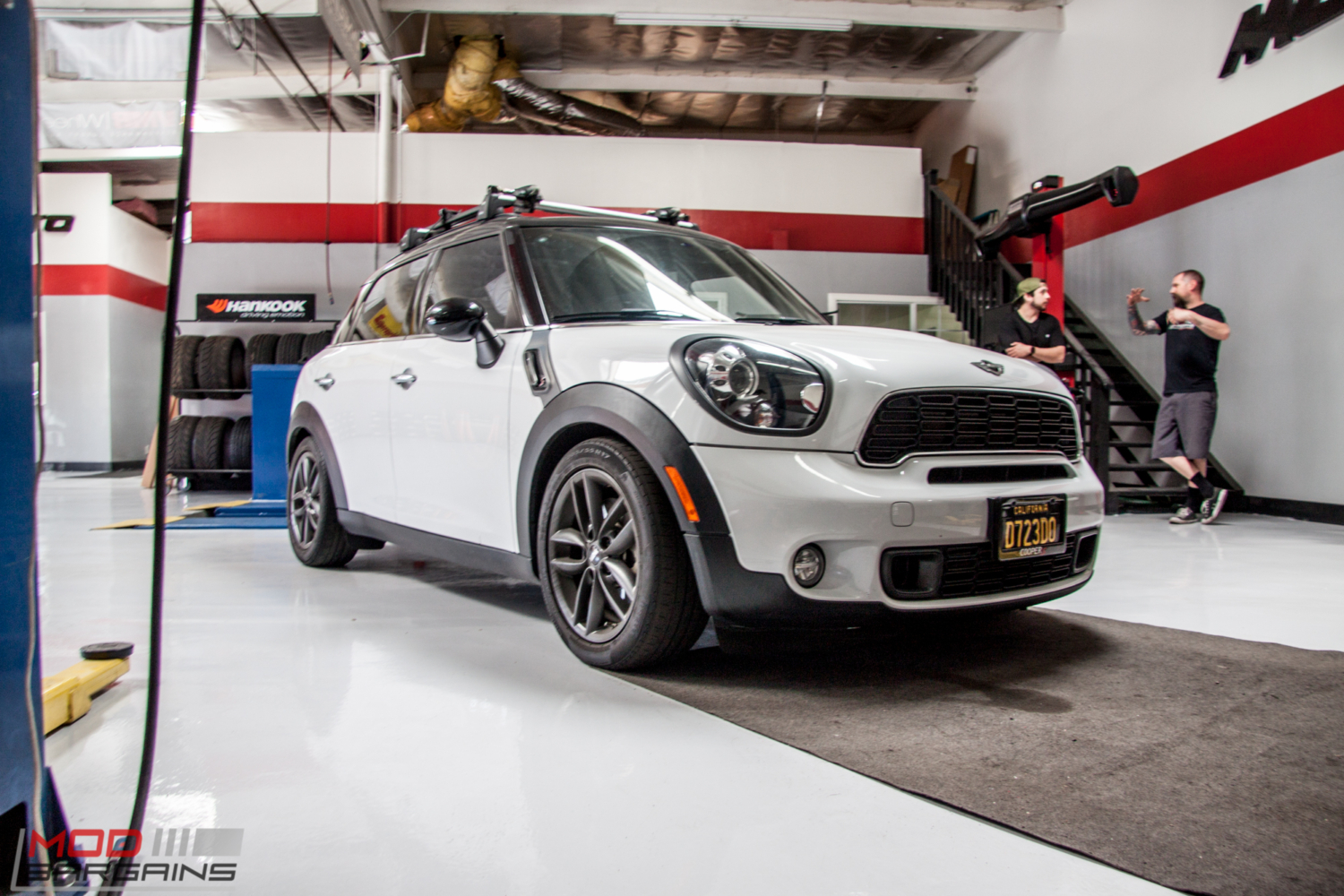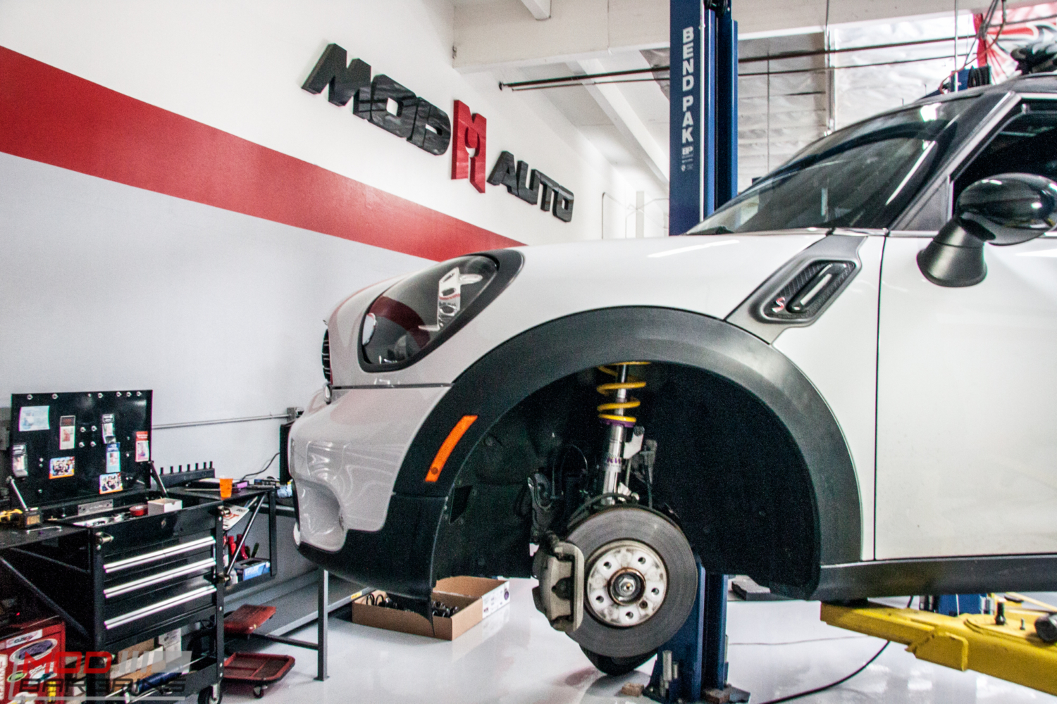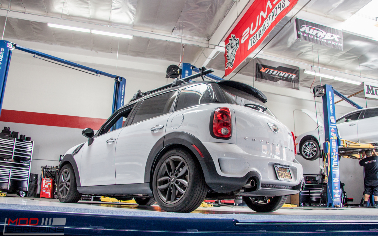 The Mini Countryman is a cool little CUV, and being a Mini, it’s inherently fun. However the stock ride height is more appropriate for offroading and leaves the car looking far from its best. That’s why this Mini came in to see Mod Expert Tim to lower the suspension – and a set of custom Forgestar wheels is on order too, but we still have a few weeks left to wait on those.