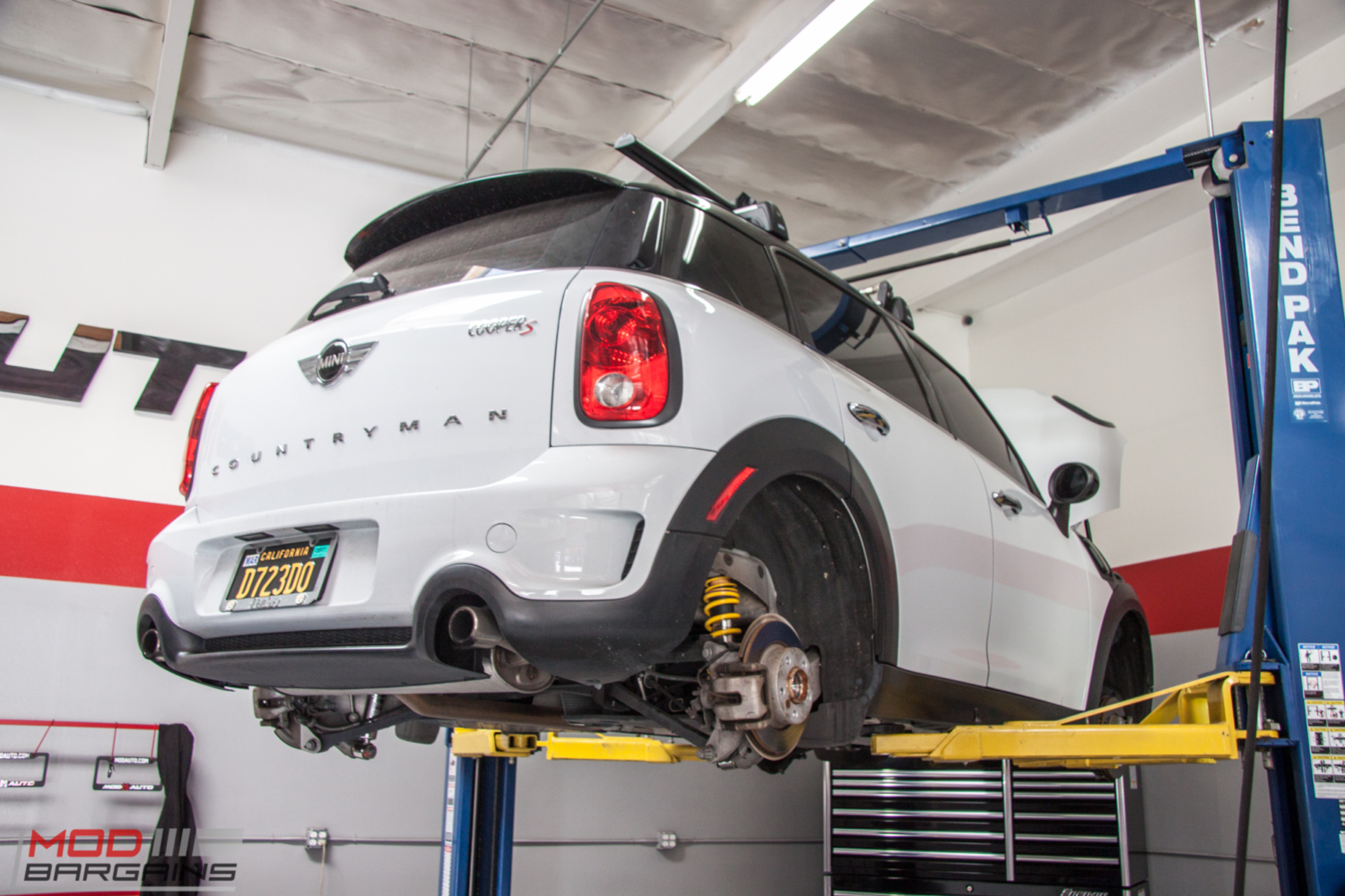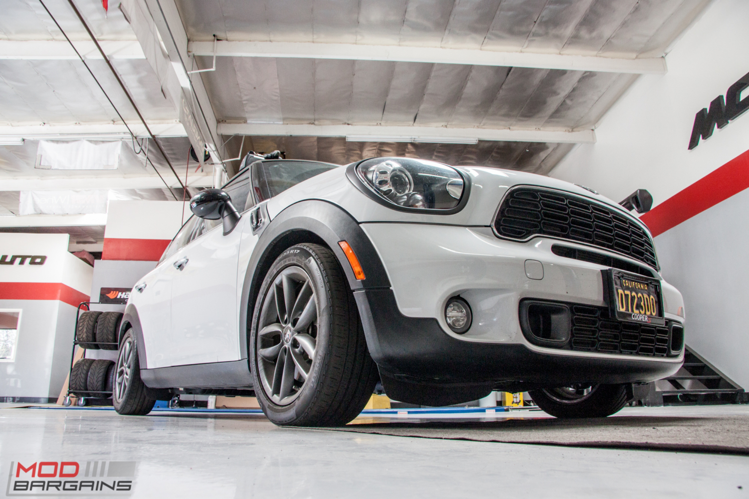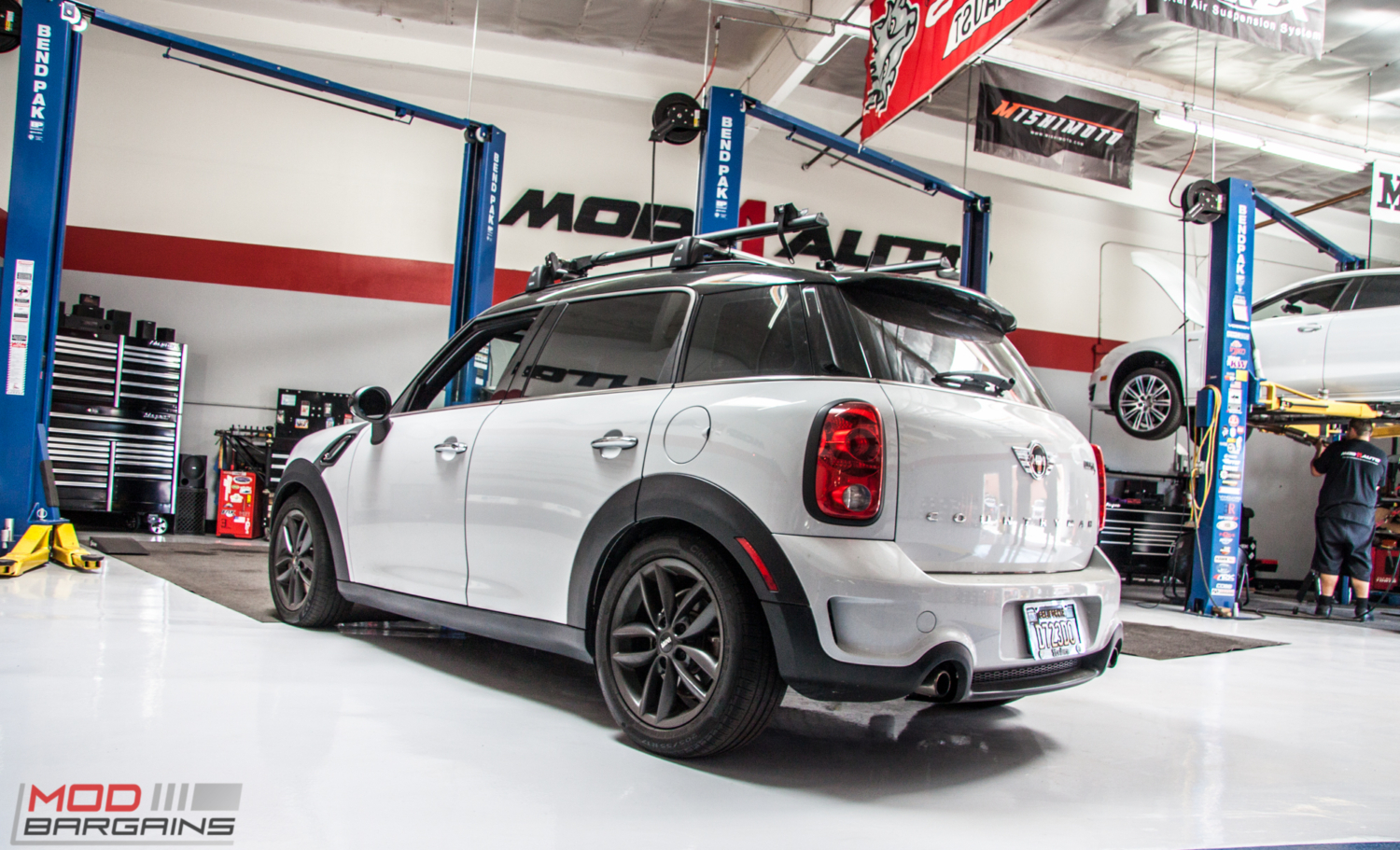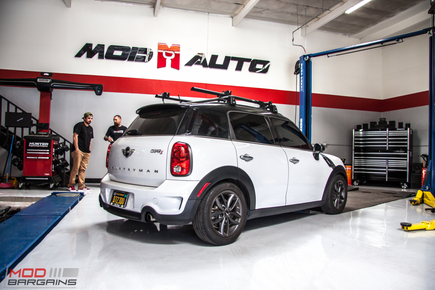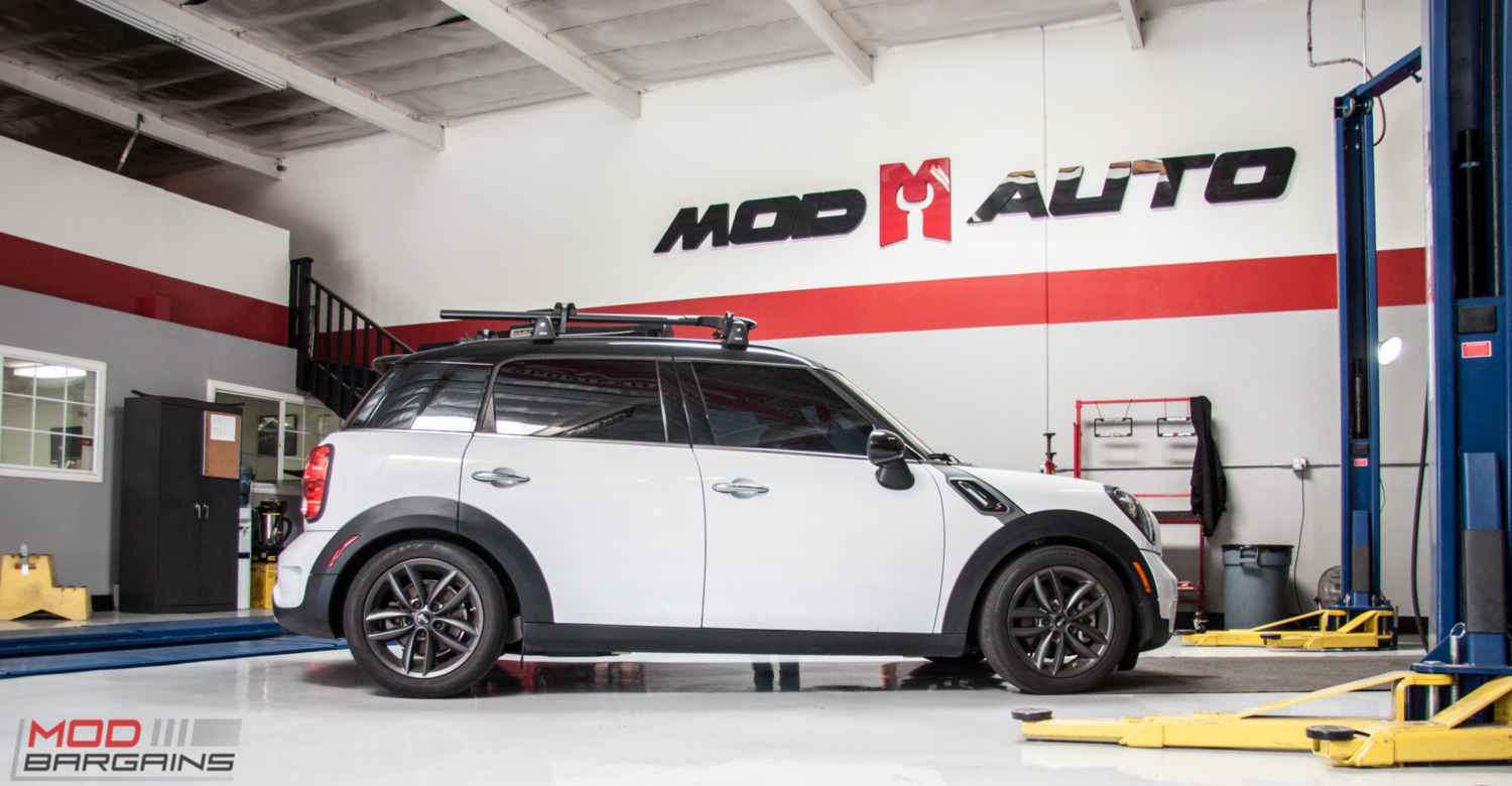 The Mini Countryman is a cool little CUV, and being a Mini, it’s inherently fun. However the stock ride height is more appropriate for offroading and leaves the car looking far from its best. That’s why this Mini came in to see Mod Expert Tim to lower the suspension – and a set of custom Forgestar wheels is on order too, but we still have a few weeks left to wait on those.