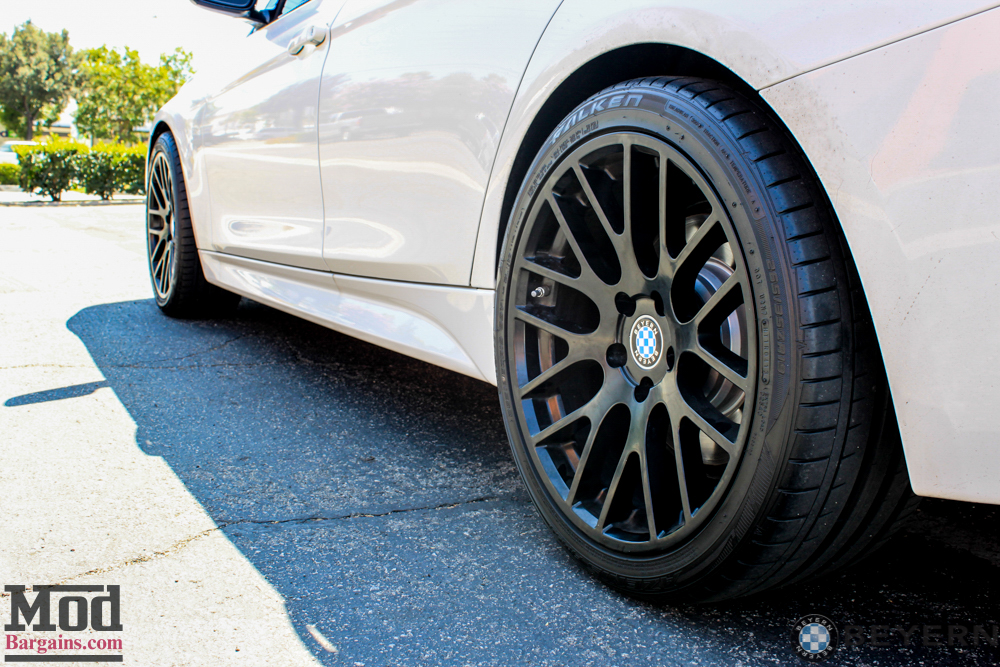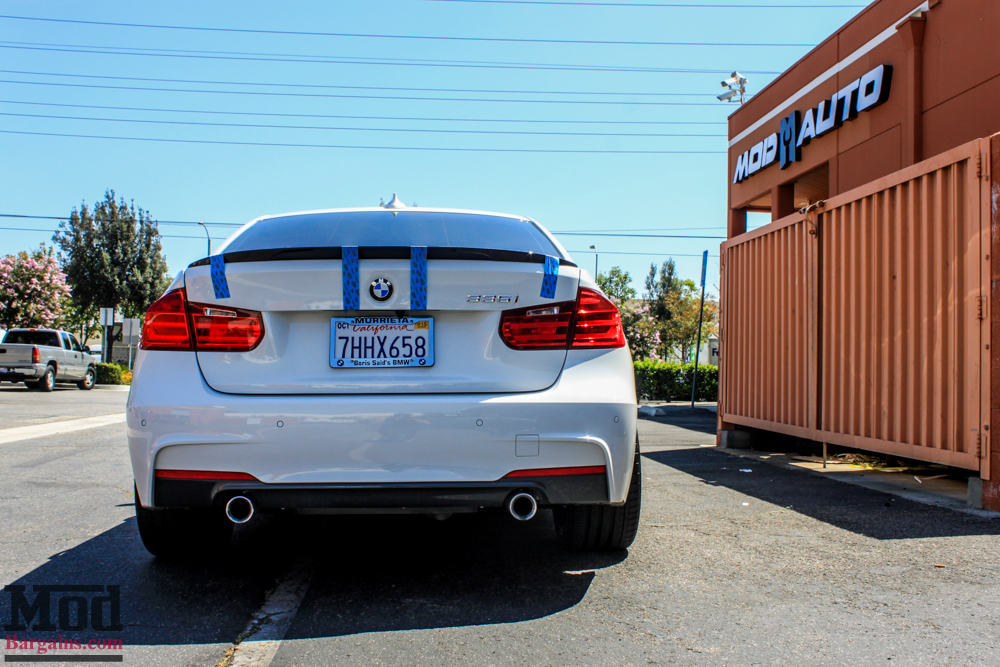 Raul Z brought in his alpine white F30 BMW 335i the other day to give the car a few cosmetic mods and the drop it needed to match the set of wheels it already had. The F30 is a handsome sedan, to be sure, but as Raul found, the wheelgap of the factory F30 suspension is sufficient for a frigging 4×4. Raul gave the Mod Experts a call – ModBargains Co-Founder Ron helped Raul out with coordinating the install.