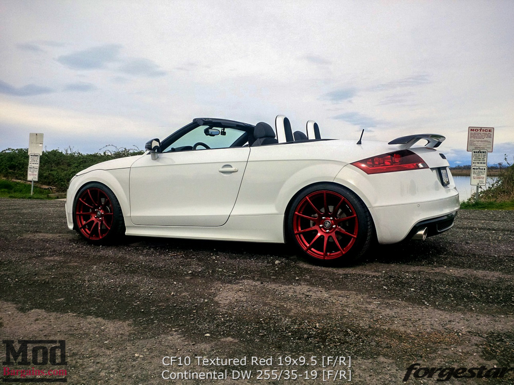 Recently ModBargains CoFounder Ron assisted customer Tim Chen with ordering a set of unique Forgestar CF10 wheels for Audi to fit his Mk II Audi TT. Tim’s Audi already looked clean as heck sitting low, but the custom Textured Red finish really set off the look of his TT on the Forgestar Wheels CF10s.