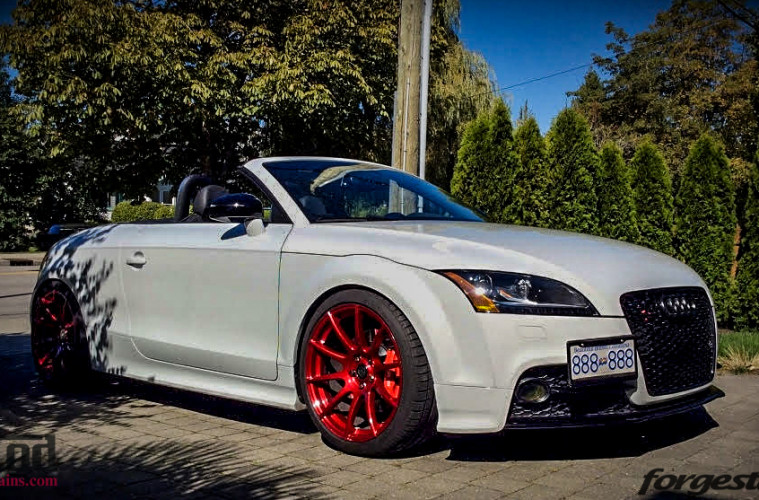 The Blood Red wheels for Audi TT really add a strong visual accent to a car that might otherwise get washed out with so much white – the loud Red accent turns the car from subtle into a real neckbreaker.