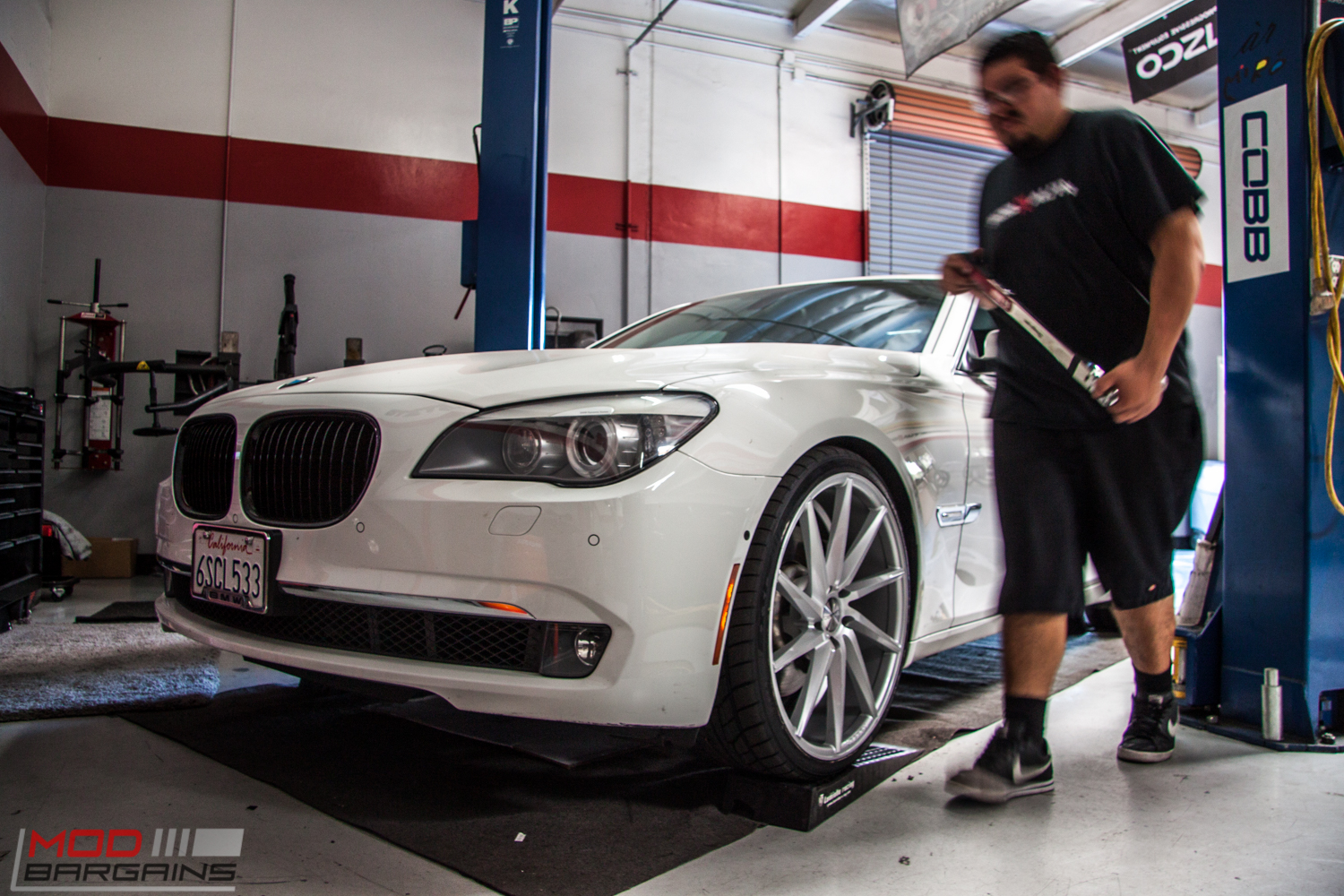 It’s not every day we get a big body F01 BMW 750i in the shop – most people really don’t think too much about lowering the luxurious BMW 7-Series Suspension, but man, we gotta tell you, lowering these cars really makes a world of difference in terms of appearance. We’ve told you before that a set of wheels and a drop can utterly transform the look of a car, and that’s exactly the case with this incredible looking seven.
