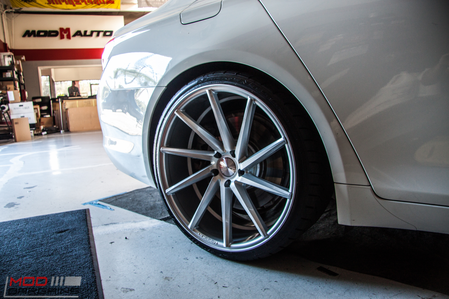 After lowering the car with a set of H&R Springs for F01 750I to take care of the ride height, the next order of business was replacing the kind of frumpy factory wheels with a set of slick new directional wheels from Vossen.