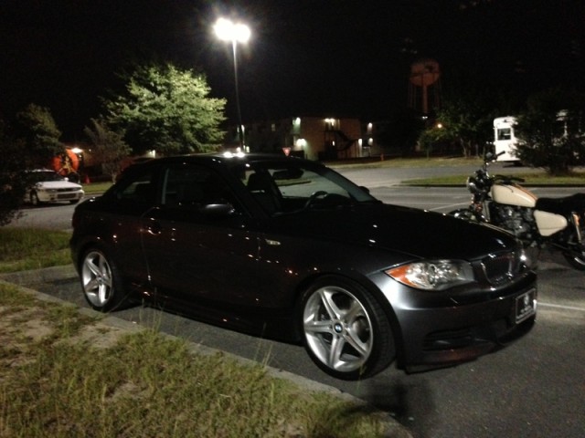 Over the past few months, USAF Linguist Casenas has been working with USN Veteran and Modification Expert Kirk Villeneuve on his ’08 135i. Not a stranger to modding, Linguist Casenas has previously customized an ’06 BMW 330i and a FBO-status ’99 C5 Corvette before making the switch to a 135i – opting for the 1 instead of an LS2-powered Pontiac GTO/Holden Monaro. Considering where this 1-series is now, it’s clear he made the right choice. Like most of us who like to mod things, when he bought the car, he promised himself he’d “keep it stock” – and barely lasted a month. (I lasted two months before modding my car, haha. -Ed.)