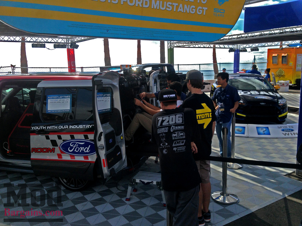 Over at the #SoCalFord booth, Rally Innovations brought out their Race-Room customized Ford Transit Connect, set up with race simulator seats not unlike what we have in the customer lounge at Mod Auto.