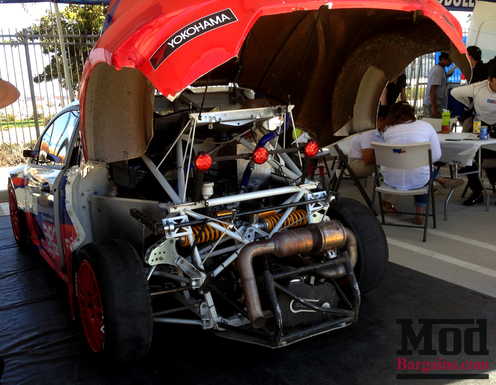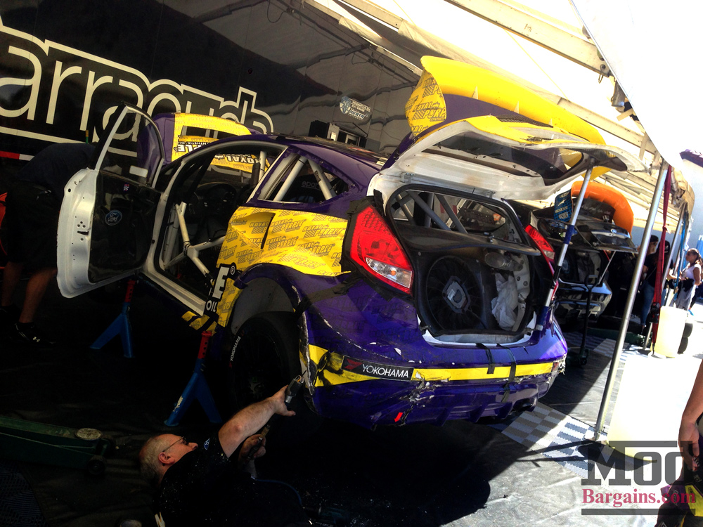 We mentioned earlier that cars like Ken Block’s Fiesta ST above in the Supercars class are still based on the production cars, the engine’s still in the same place, the frame is the same as what you’d get from the dealer. Step down to the “Lites” class, however, and the story changes completely. Though the “Lites” cars bear a resemblance to a Fiesta, they’re about as much Fiesta as your mom’s Toyota Camry has in common with a NASCAR “Camry”.