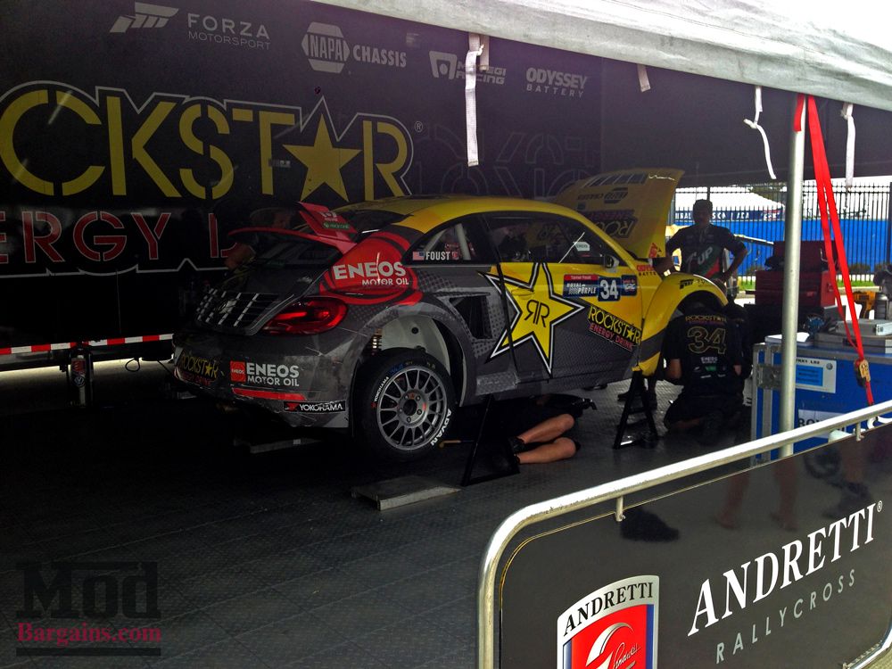 Tanner Foust’s AWD Beetle spent the majority of the day looking like this, it never made the track.