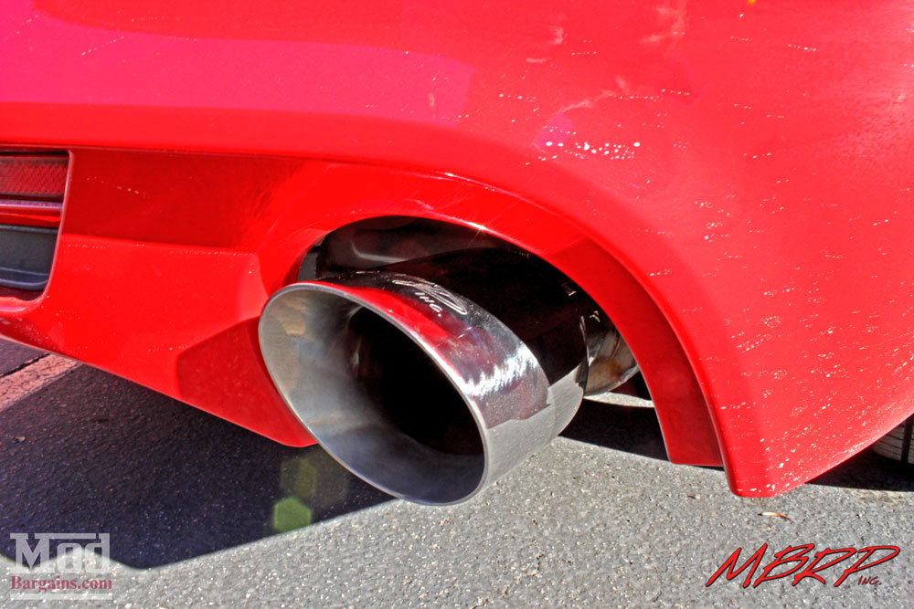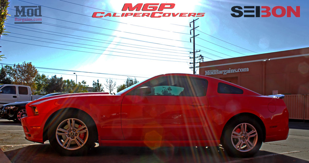 To give the car a bit more visual flare from the side profile, a set of MGP Caliper Covers for Ford Mustang, finished in red, were fitted to give the car a more color coordinated look, and the covers really do a lot to add visual interest to the wheel wells of the car.