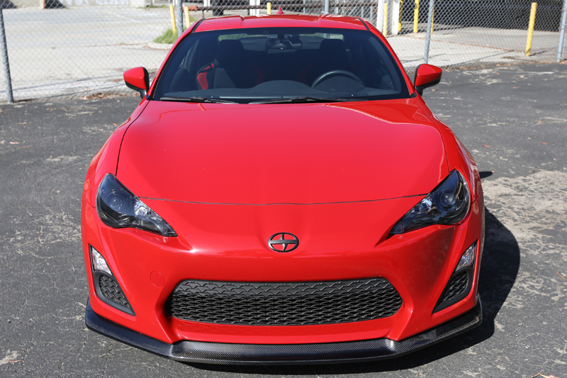 All together, these Carbon Exterior Upgrades give the car a more aggressive yet purposeful look – and as an ensemble, the combination of the 2H Front Splitter, Duck Bill Trunk Spoiler for FR-S & BRZ and Side Skirt Diffuser Extenisions for FR-S & BRZ, coupled with the dark finish on the wheels, creates a stylistically sound red-and-carbon theme that matches the upholstery style on the interior.