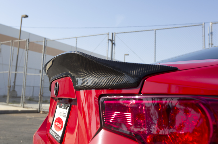 Rounding out the supple rear end of the FR-S is a Duckbill Style Trunk Spoiler for FR-S & BRZ in Carbon Fiber. The clean sculpt of the lip-style spoiler for FR-S blends well with the natural sporty lines of the GT86′ body – and in carbon fiber, it really stands out against the red body of the car and is a great way to modify your Scion FR-S Aero characteristics.