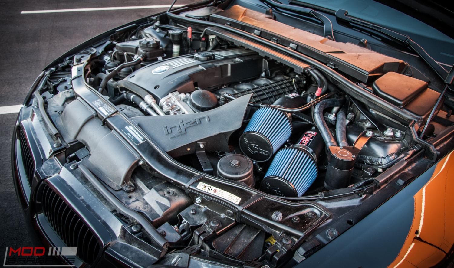 We’ll start with the obvious- in case you couldn’t see the big plastic heatshield with massive embossed INJEN lettering, we’ve installed an Injen Intake for BMW N54 to enhance throttle response and power.