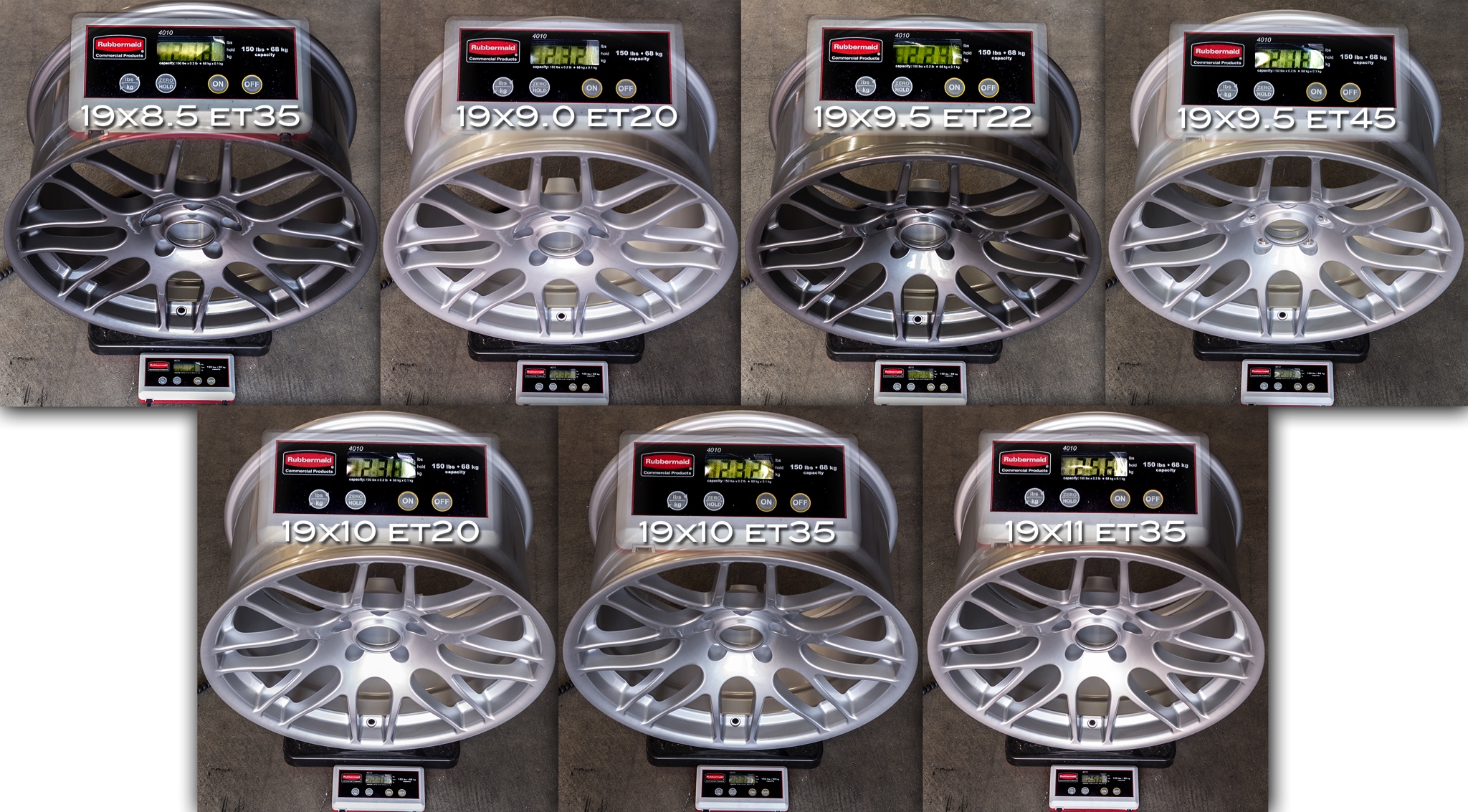 Sportline wheels are an amazing bang for the buck, as they’re manufactured using the Rotary Forging process (sometimes called Flow Form) that creates a wheel that’s lighter and stronger than wheels produced using the more common (and less expensive) gravity cast or low pressure cast methods. Starting at just $1280 per set of 19s as of press time, these offer fantastic performance for the money. Check out the weights above.