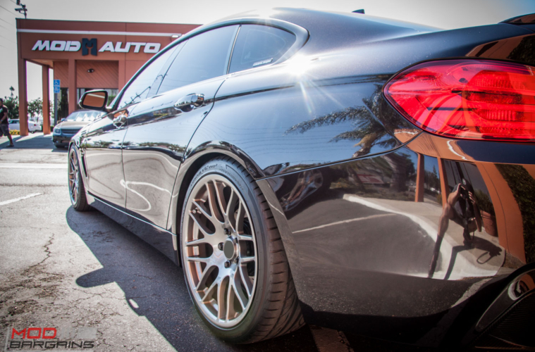 Check out this awesome F36 customized by ModBargains install shop Mod Auto. Owned by friends of ours with help from BMW specialist Mod Expert Sean, they’ve turned this F36 BMW 428i GranCoupe from boring to badass. It’s all the little details that add up to turn a kind of funky car – the 428i GranCoupe – into a lustworthy embodiment of “the Ultimate Driving Machine”. This car nails every bullet point on the list of what it takes to make a modified car truly stand out from the crowd, though we do have to say that lovely Merlot hued metallic paint is a great place to start, especially when you consider the vast majority of BMWs are one of five “colors”, Black, White, Gray or Silver – though for a while it did seem almost like F30s only came in Yas Marina Blue, there were so many.