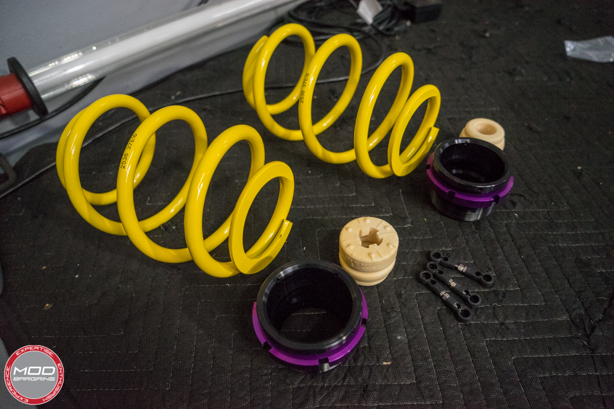 When it came to suspension the decision was a bit trickier. Modifying the suspension of a high end modern vehicle isn’t as simple as it used to be. This particular model comes standard from the factory with adaptive suspension and self leveling rear air suspension. If Mike had wanted to install aftermarket coilovers or full air suspension it would’ve meant buying expensive adaptive suspension delete kits and losing functionality of the factory adjustment buttons. Doesn’t seem like much of an upgrade if you’re sacrificing features just to get it to work. Luckily our friends over at KW have a much simpler solution.