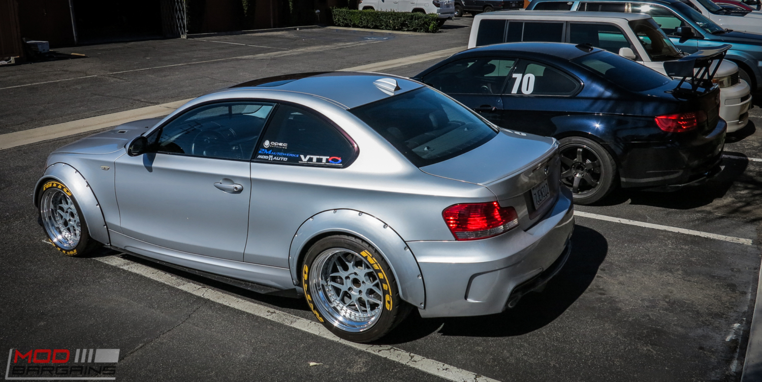 Once and a while a car rolls through our lot that just makes us stop and go, “DAAAAAAMN!!”. With bulging bolt-on fender flares, a power-bulge 1M Style hood and ridiculously beefy Nitto Tires on some preposterously deep dish wheels, this is one E82 BMW 135i you’re sure to take notice of.