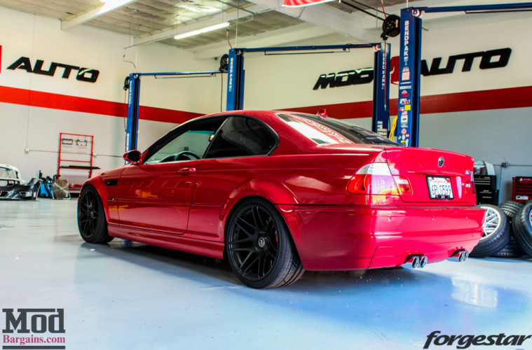Rocking a staggered set of gorgeous 19in Forgestar F14 Super Deep Concave wheels wrapped in NITTO INVO Tires, this E46 has the grip it needs to hold in the corners- combined with its suite of other modifications, this car has to be a joy to drive on the track or on your favorite stretch of Mulholland.