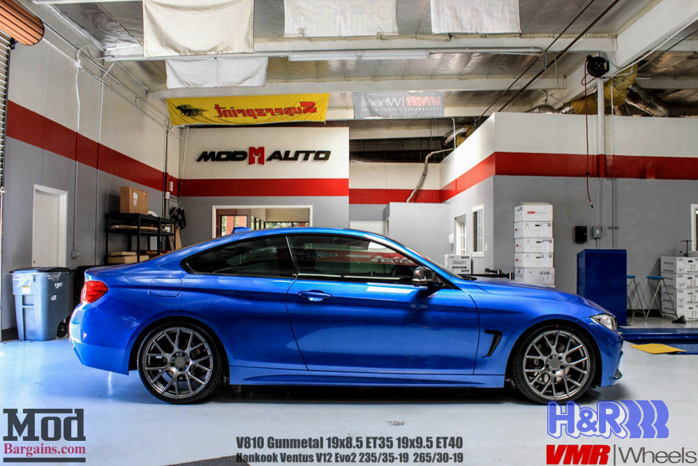 BMW F32 428i on VMR V810 19×8.5 ET35 / 19×9.5 ET40 in Gunmetal Finish on H&R Springs