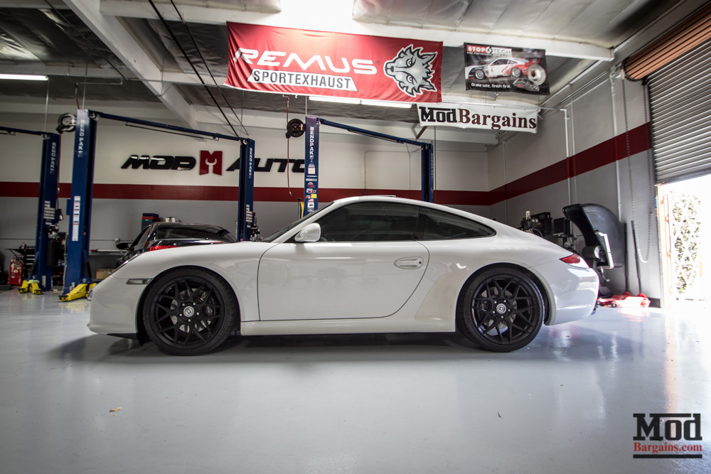 The Porsche 997 above is on HRE FF01s in Tarmac finish. Though this is the newer 997 platform, these wheels look great on either generation. HRE Performance Wheels has long been a favorite of Porsche enthusiasts, and their new Flow Form line of wheels are a great option.