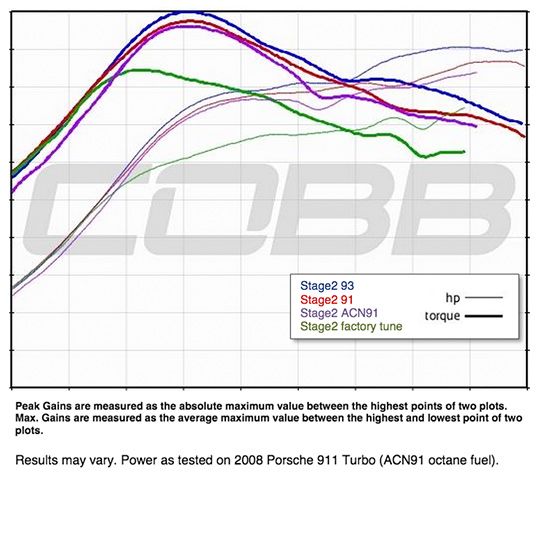 Fabspeed’s ECU Tune for the Porsche 996 Turbo increases power by 78 whp and 90 ft-lbs of torque. This one’s more of a pain in that you must remove your ECU and mail it to Fabspeed, but is the “old guy on the block” and a reliable tune many people have been using for years.