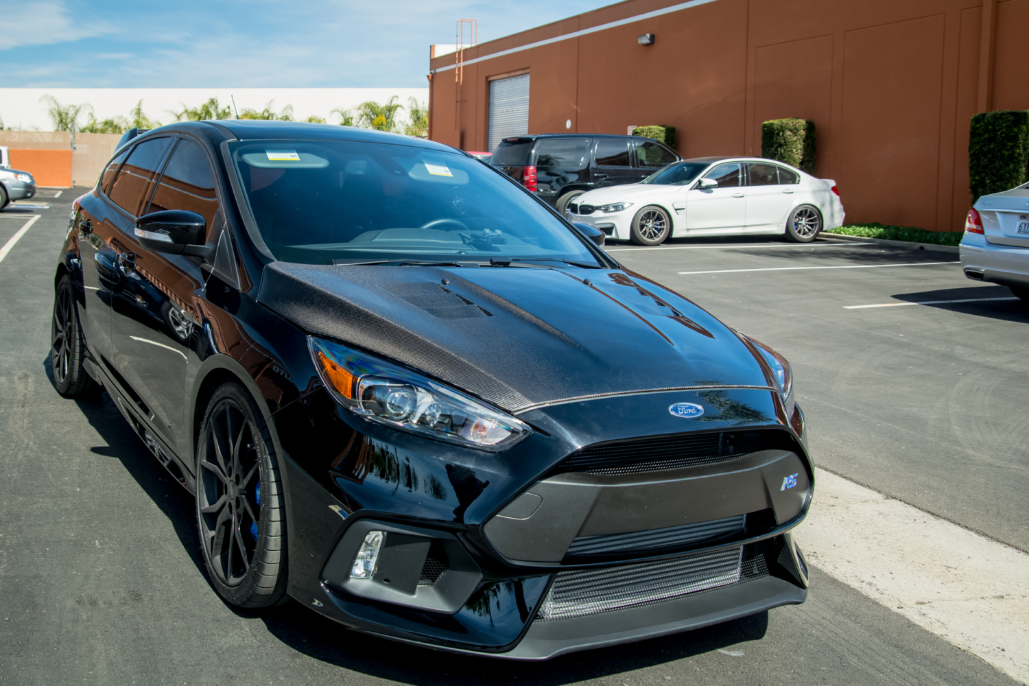 Rally Innovations offers a full suite of aero for the Focus RS, including the front Splitter as well. They also custom modified this hood with WRC Style Hood Vents to give the car a more aggressive character.