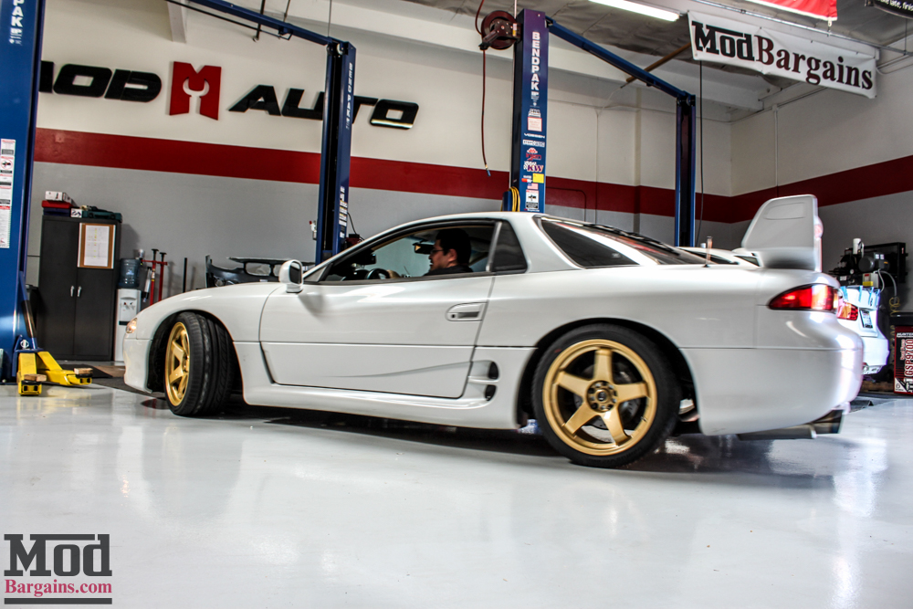 It was in need of new wheels – and an alignment. And with 4-wheel-steering, alignment can be a tricky bugger – fortunately our team of Mod Experts like Blake aren’t intimidated by that kind of challenge, so Blake got it scheduled, and we got to work giving this 3000GT some much-needed love.