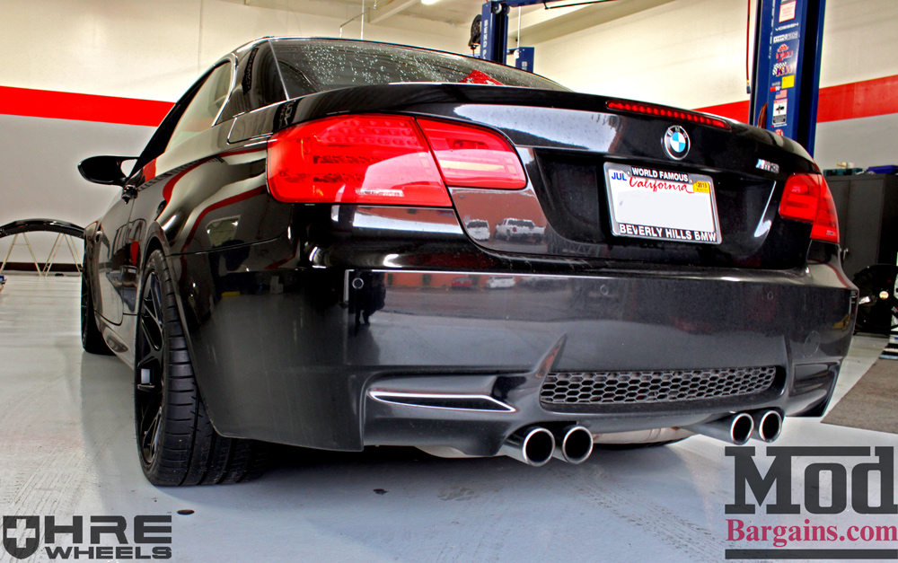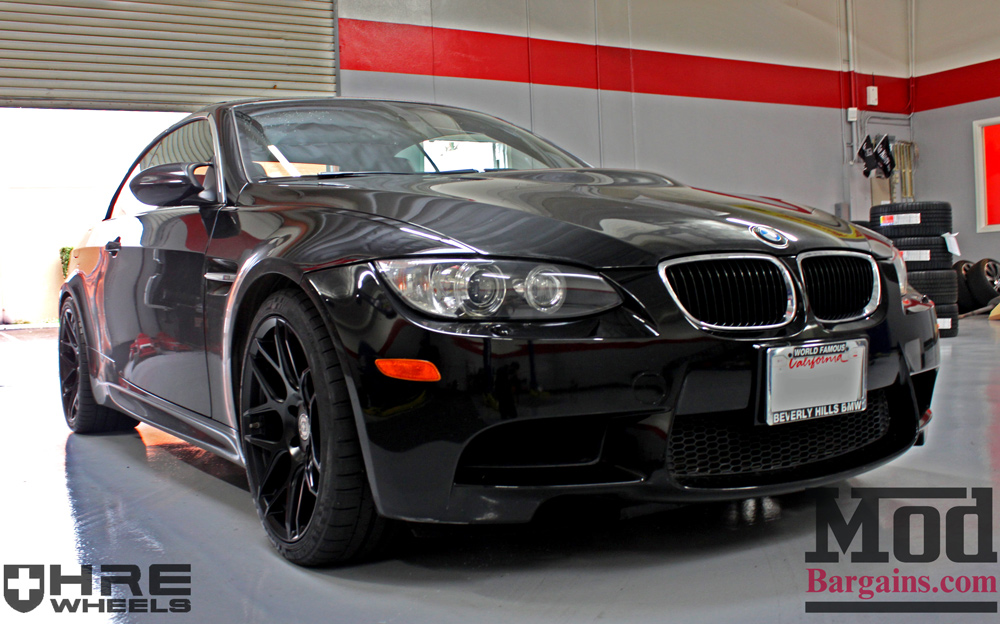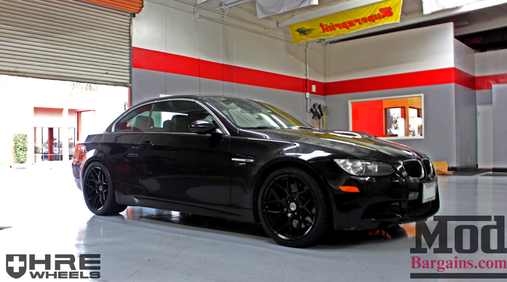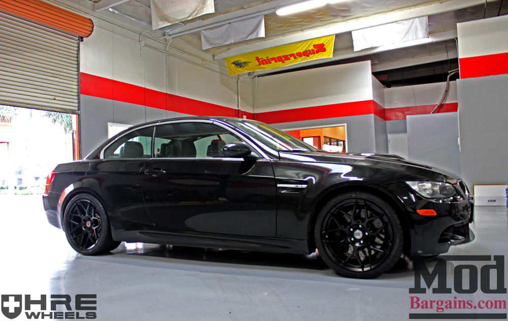 This saturday, this handsome BMW E93 M3 Cabrio popped by the shop to be fitted with a new set of shoes. Black with black hardtop and black interior, can you guess what color the wheels were? The new footwear for this E93 M3 Cabrio is a set of HRE FF01 Wheels for BMW, finished in Tarmac, creating the perfect triple-black aesthetic. When it comes to wheels, the fitment and offset is critical, especially for a BMW, where your fitment changes dramatically depending on whether it’s a 3-series, M3, xi and so on – fortunately the Mod Experts – our ‘wheel wizards’ as it were – know the offsets for late model BMWs better than the back of their hands.