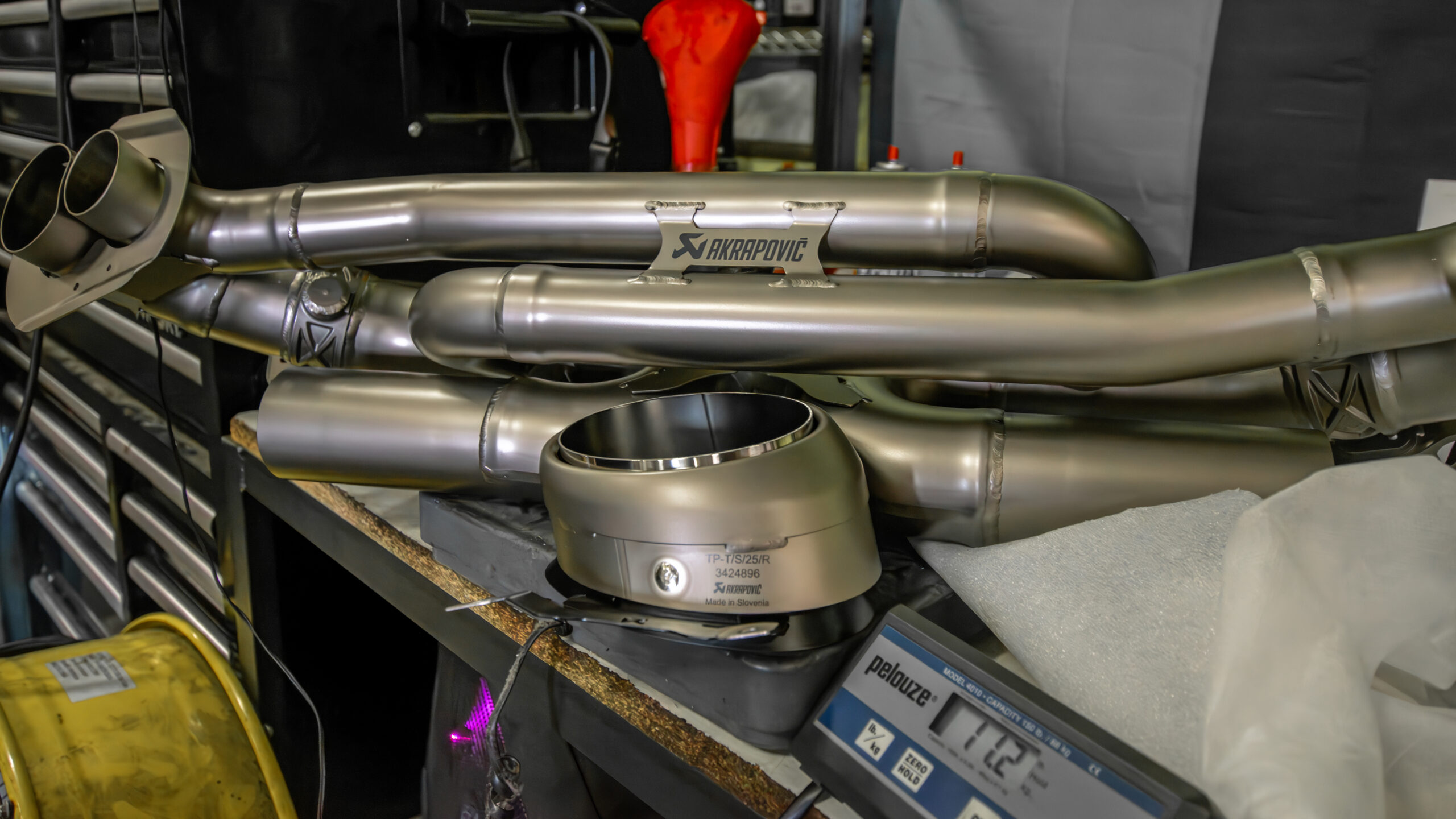 In contrast, the Akrapovic exhaust system significantly reduces this weight, with the muffler weighing just 9.6 lbs and the complete system with tips at a mere 11.4 lbs.