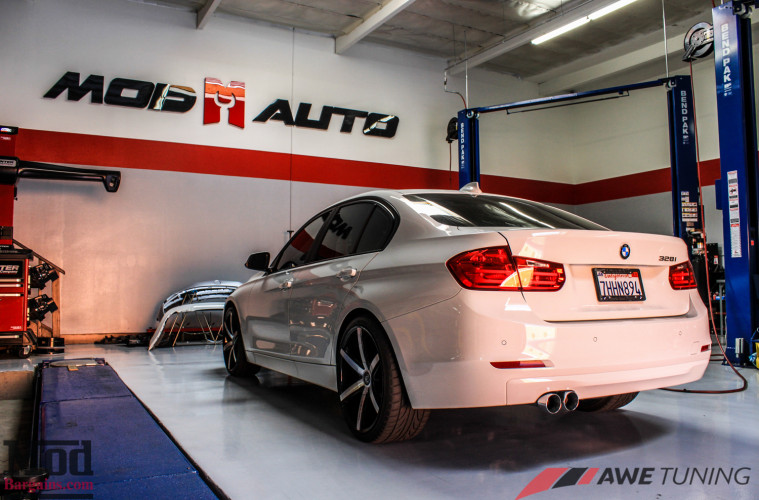 As we’ve said before, the stock exhaust of the BMW F30 328i is less than exciting sounding, and less than ideal for performance – and sound. The BMW F30 328i sports a rather potent turbocharged four cylinder engine (N20 or N26), however, since it’s a four banger, it can be tricky to make it sound good and avoid that “Honda Buzz” that’s so unpleasant to so many ears. With hundreds of man hours in developing and tuning the tone and acoustic behaviors of their exhaust systems, Mod Expert Blake knew that setting the owner of this F30 up with an F30 exhaust from AWE Tuning was just the ticket.