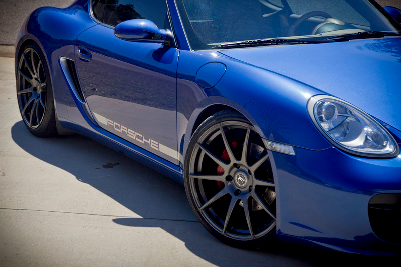 Pilots owning fast cars has been a tradition for ages – the original Apollo astronauts had matching Chevrolet Corvettes (of course someone who pilots a rocket would want a straight-line monster!), and to this day the USAF has actually had military-commissioned musclecars to run alongside and guide U-2 Recon planes to the ground as they land – the latest of which were Pontiac G8 GXPs, though it’s been said they’ve upgraded to Gen V Camaro SSes. So naturally then, it makes sense that a future helo pilot would have something fast with precision handling that’ll respond to his every input immediately – a very dialed in Porsche Cayman. US Army Warrant Officer Bobby Triantos has been working with USN Vet and ModBargains Modification Expert Kirk Villeneuve to put a set of Forgestars on WO Triantos’ 2007 987 Porsche Cayman
