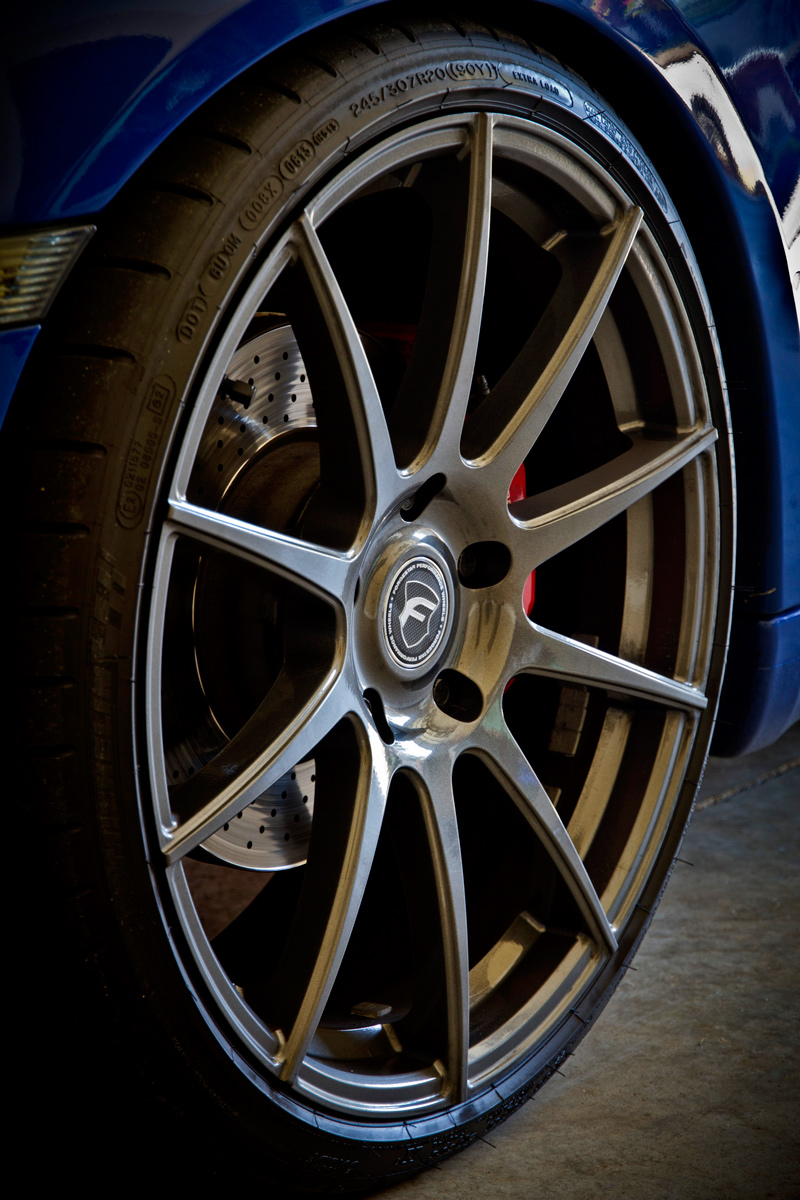 These Forgestar CF10 Wheels for Porsche are spec’d out at 20×9 up front and 20×10 rear, wrapped in Michelin Pilot Sport Tires to make this beautiful wheel package stick to the ground. Kirk recommended this fitment for the car and the end result looks fantastic. A few subtle exterior mods set the car apart, including a Fluid 987 Carbon Fiber Extended Rear Spoiler, custom painted grilles and foglamp spears and a set of custom Cayman R stripes round out the aesthetics for a purposeful but subtle look.