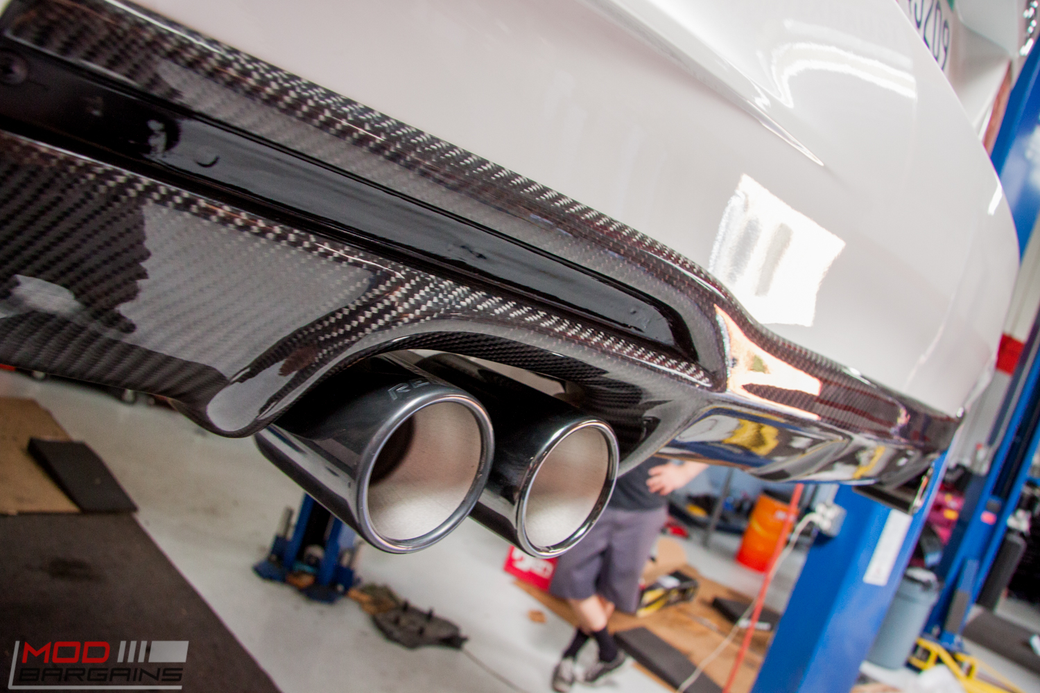 Next on the agenda was a REMUS Sport Quad Exhaust System for F30 BMW 328i, which meant the stock bumper just wouldn’t work for the quad outlets without cutting – so for the setup to look its best, we replaced the stock rear bumper with an M-Sport Style Rear Bumper for BMW 328i/335i [F30], fitted with a Performance Style Carbon Fiber Rear Diffuser for F30 BMW 328i/335i M-Sport Bumpers with Quad Tips to really bring the package together.